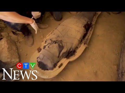 エジプトの首都カイロ近郊サッカラ遺跡でミイラ100体以上発見。保存状態良好のミイラ100体以上が発見が未盗掘で発見された動画。