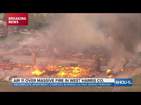 水曜日の朝、ハリス郡西部で建設中の集合住宅で大規模な火災が発生しています。炎は日の出直前に朝の空をオレンジ色に変えました。何マイルも離れたところから濃い煙が見えます。