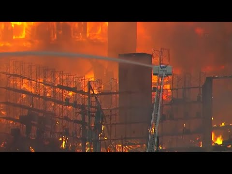 ヒューストン近郊の火災により、建設中のアパートが焼失。